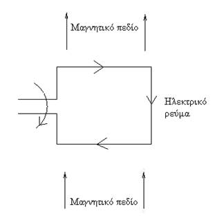Στο μοτέρ ηλεκτρικό ρεύμα περνά από μια συρμάτινη περιέλιξη (οπλισμό) η οποία βρίσκεται μέσα σε μαγνητικό πεδίο. Μια δύναμη τότε εφαρμόζεται στην πάνω πλευρά του οπλισμού (στο παράδειγμά μας) και τον σπρώχνει προς τα έξω ενώ μια άλλη στην κάτω πλευρά τον σπρώχνει αντίθετα. Το αποτέλεσμα είναι να περιστραφεί ο οπλισμός.. Μια διάταξη που ονομάζεται μεταλλακτήρας αντιστρέφει τη φορά του ρεύματος δύο φορές σε κάθε περιστροφή και έτσι εξασφαλίζεται η συνεχής περιστροφή του οπλισμού.